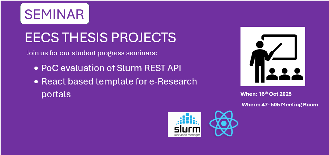 RCC's thesis project students, from UQ's School of Electrical Engineering and Computer Science, (EECS) will be presenting their progress seminars on Thursday, 16 October 2025, from 12pm–1:30pm.